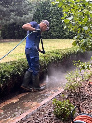 Poprawa wyglądu posesji – dokładne usunięcie zabrudzeń sprawia, że kostka brukowa wygląda jak nowa.